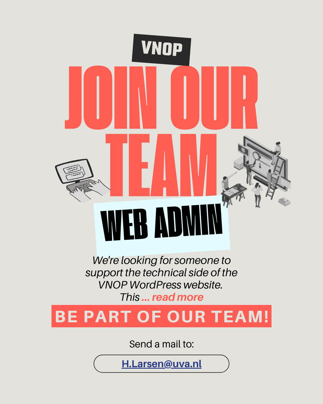It’s a great chance to build practical skills, learn more about website management and the inner workings of an academic society, and become part of the VNOP team with a broad national and international network.